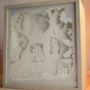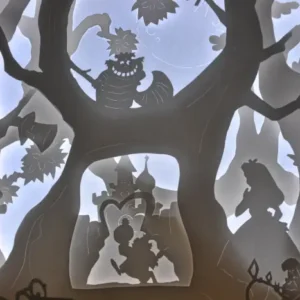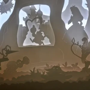 Plongez au cœur du monde enchanté d’Alice aux pays des merveilles . Chaque plan de papier, minutieusement travaillé, dévoile des scènes iconiques de l’histoire et des personnages fantastiques aux paysages surréalistes. Les découpes jouent avec la lumière pour créer des ombres délicates et des reliefs subtils, plongeant ainsi votre espace dans une ambiance féerique. Laissez-vous envoûter par la lumière douce et les détails enchanteurs de cette création inspirée d’Alice au Pays des Merveilles, et transformez votre espace en un véritable théâtre de rêves.